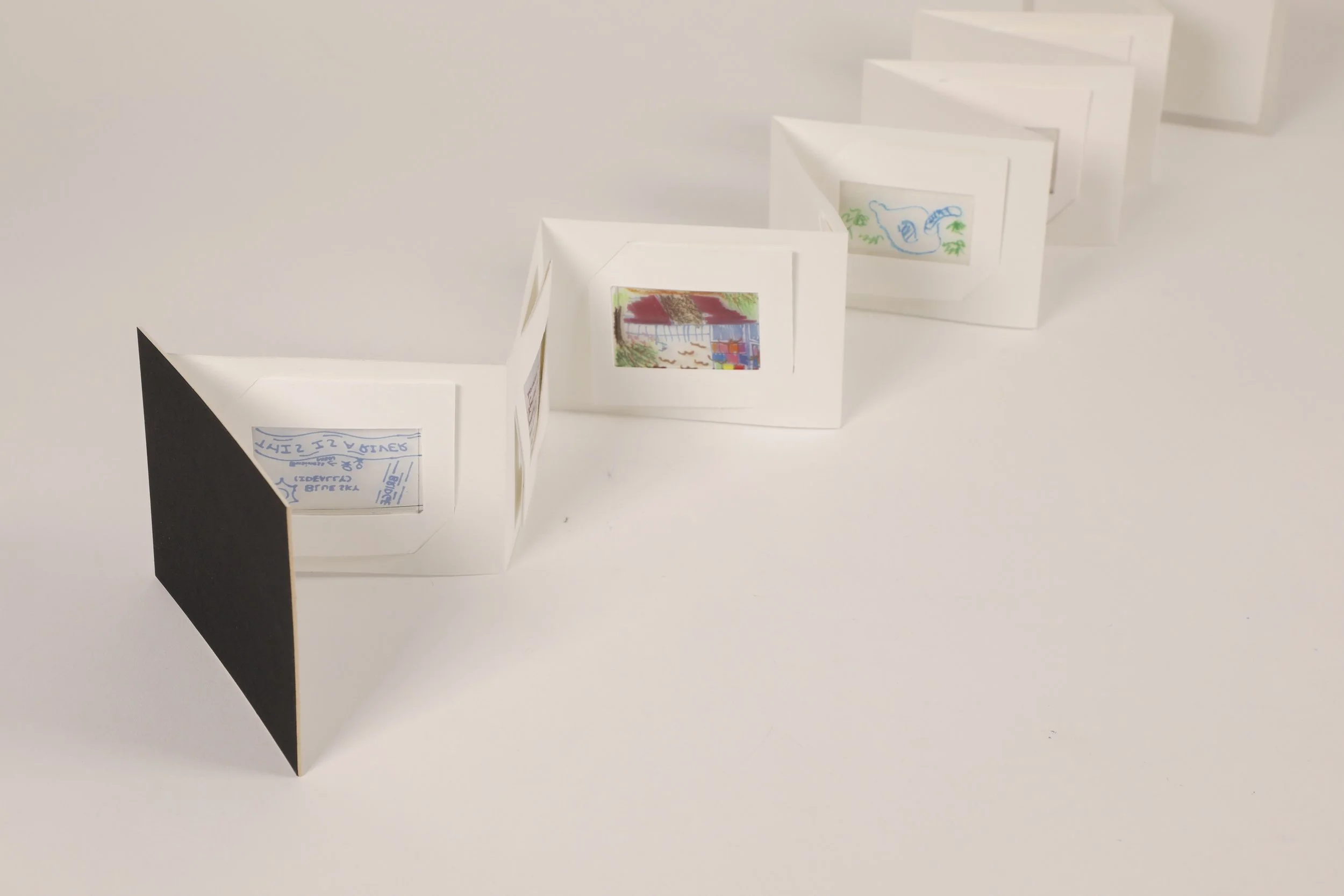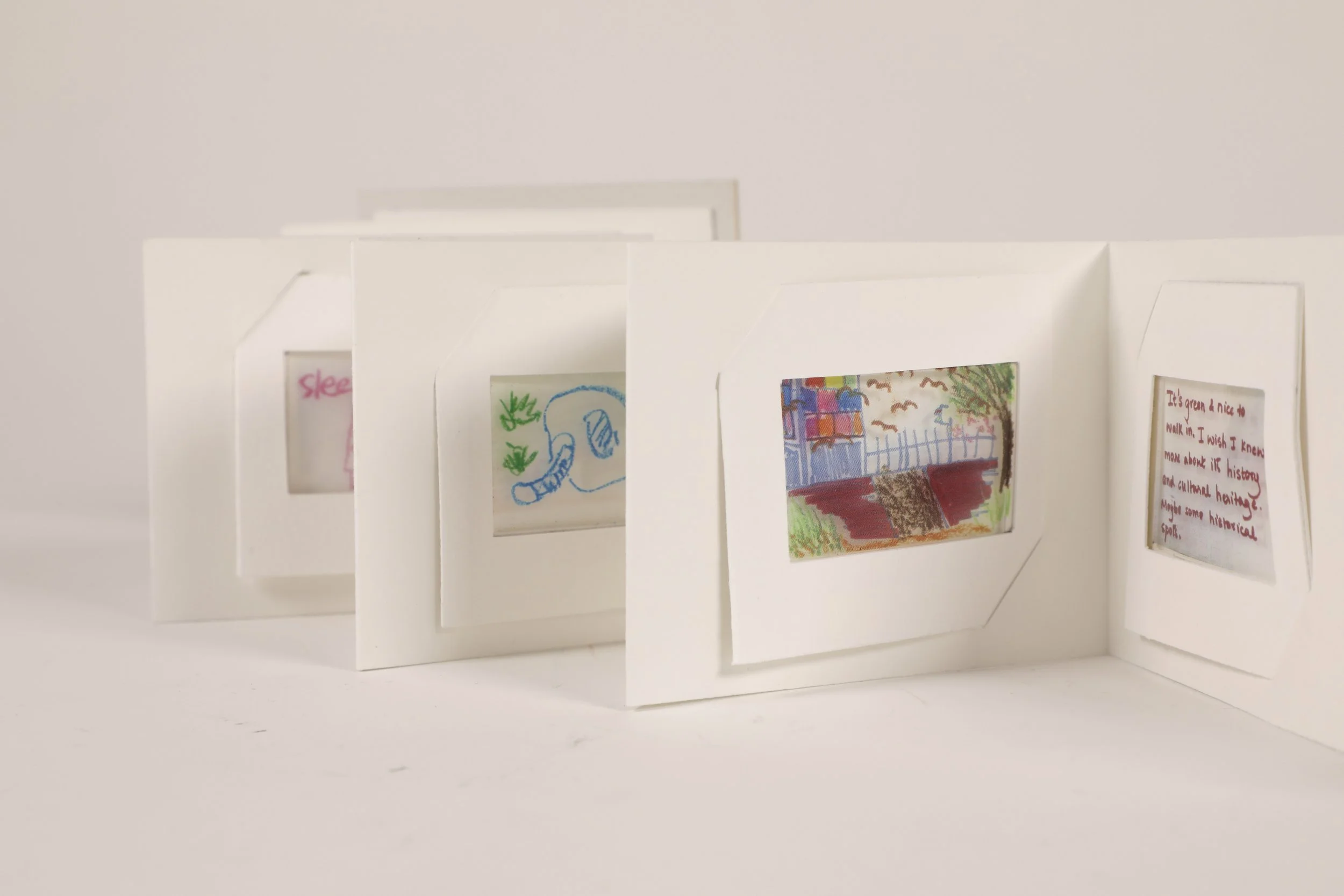 To further develop this project, we were presented with the question of where can these objects live in the world? We received suggestions of maybe projecting the memory cards on buildings or other structures so that it is presented back to the community as a whole. We can also invite the users to decorate their viewfinders and booklets so it becomes more personal. The next steps to consider for this project would be to maybe a change in scale, perhaps larger so that it can hold a larger viewing audience.